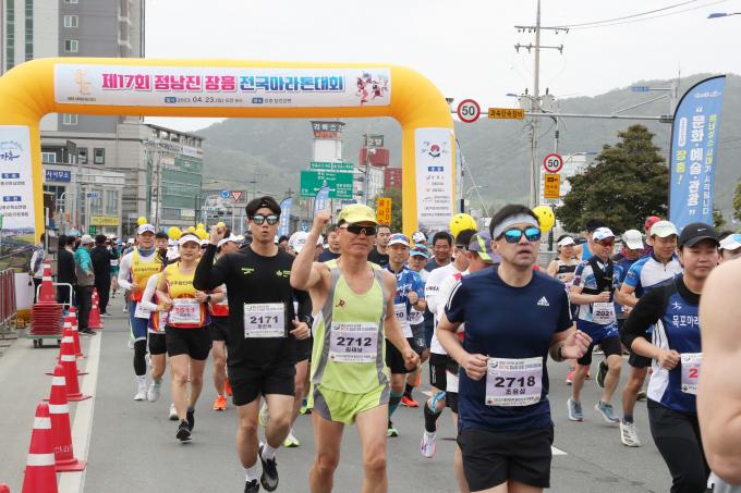장흥군육상연맹이 주최한 제17회 대회는 23일 전국 마라톤 동호인과 지역민 2000여 명이 참가해 풀코스와 하프코스, 10㎞ 단축코스, 5㎞ 건강코스까지 4개 그룹으로 나눠 치러졌다.