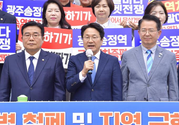 강 시장은 이날 광주송정역에서 열린 '광주송정역 고속열차 증편 촉구 결의대회'에서 "광주송정역은 광주의 관문이자 시민의 발이며 교통의 연결망인 환승역이지만 많이 불편하다. 주말이면 표를 구하지 못해 원성이 높다"고 지적했다.