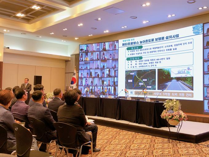 ▲25일 이병노 담양군수가 메타프로방스 농어촌도로 보행로 설치사업에 대한 김영록 전남지사의 재정지원 건의를 하고 있다. [강성명 기자]