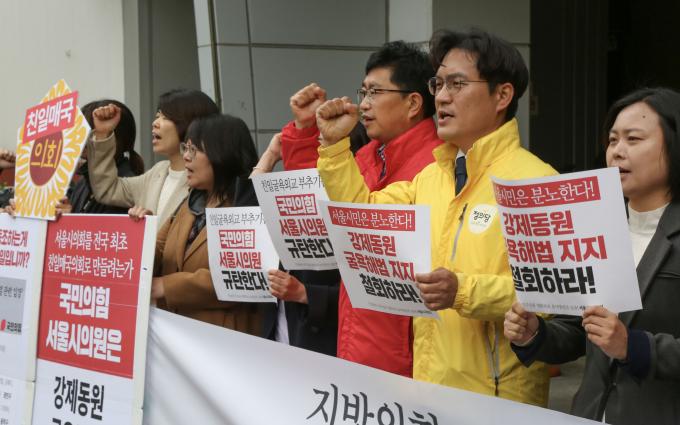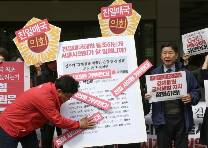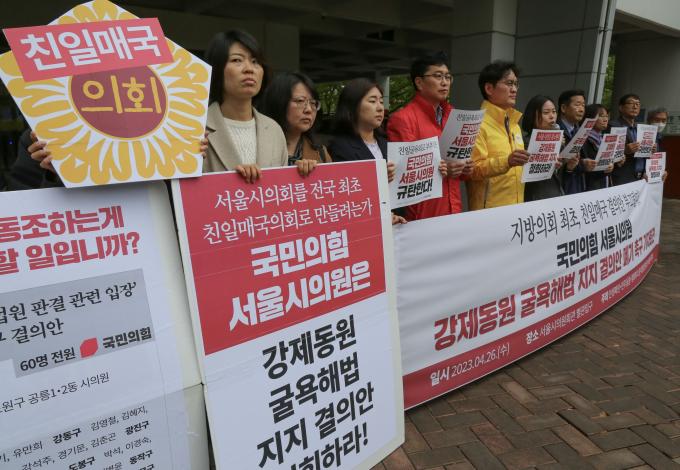 지난 3월 27일 지방의회 최초로 서울시의회가 '강제징용 정부안'에 대해 지지 결의안을 발의한 가운데 국민의힘 소속 시의원 76명 중 60명이 발의에 동참했고 발의안은 서울시의회 임시회 기간 중인 4월 26일 오전 10시 해당 상임위인 기획경제위원회에 상정됐다.