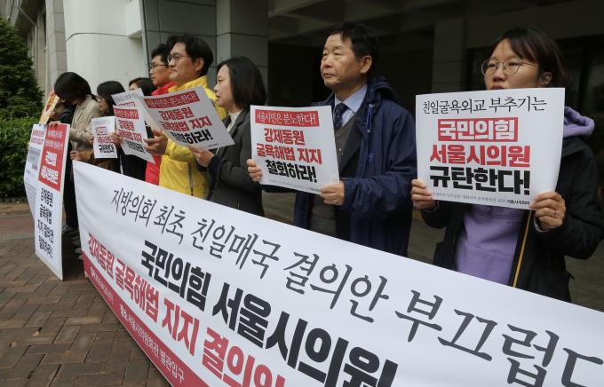 시민단체들은 "국민의힘 소속 시의원들이 사안의 심각성도 모르고 '양국교류를 더욱 확대하기 위해서'라는 조악한 이유를 들며 이번 결의안을 발의했다"며 "서울지역 182개 시민사회단체와 25개구 지역주민은 대표 발의자 박환희 서울시의원(국민의힘·노원2)의 발의안 철회 촉구와 해당 결의안 내용을 반대하며 서명을 진행했다"고 밝혔다.