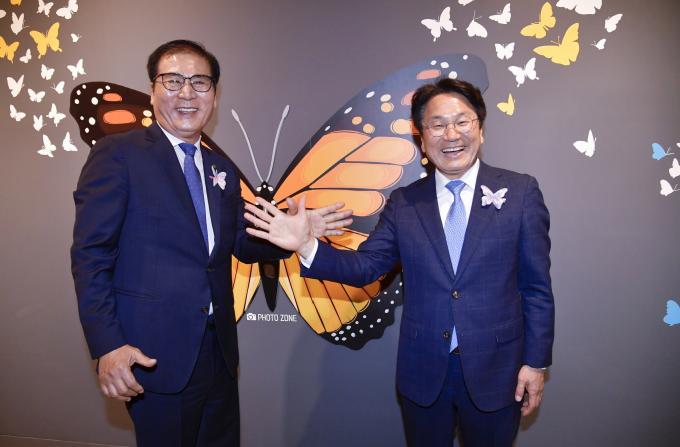 [함평나비대축제] 이상익 함평군수·강기정 광주시장, 화합의 '나비 손'