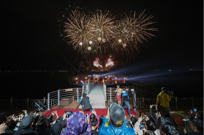 평화광장에는 올해 첫 공연을 관람하기 위해 영산강하구둑, 갓바위 해상보행교 등 불꽃쇼를 볼 수 있는 인근 장소를 비롯해 가족과 연인, 관광객 등 인파가 몰려 인산인해를 이뤘다.
