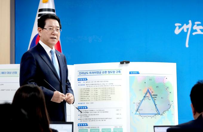 전남도는이달 착수한 타당성조사용역을 통해 트라이앵글 순환 철도망을 비롯한 전북, 제주를 연결하는 초광역 철도망 구축을 마련해 보다 발전된 철도망 계획을 제5차 국가계획(2026~2035)에 반영시킨다는 구상이다.