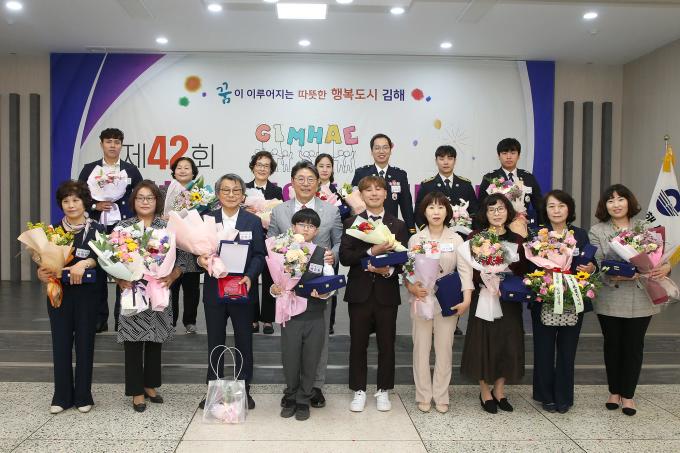 이날 기념식은 '의로운 시민' 10호와 14호인 김남희(54·여)-윤재훈(36) 씨의 시민헌장 낭독, 김해문화상과 '김해의 아름다운 얼굴' 시상, 시립소년소녀합창단의 축가 순으로 진행됐다.