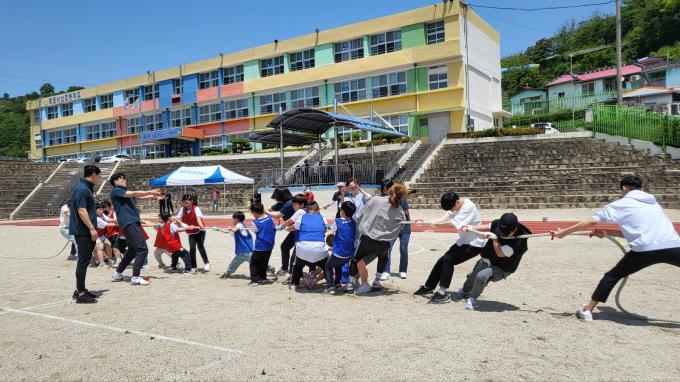 이날 체육대회 기치는 '더 높이, 더 멀리, 더 힘차게'를 내걸었다. 학생들은 줄다리기와 협동 공 튀기기·콩주머니 넣기·컬링 스태킹 등 다양한 놀이를 통해 협동심을 배웠다.