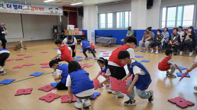 목포서산초등학교가 그동안 코로나19 팬데믹으로 열리지 못했던 체육대회를 4년만인 16일 개최했다. 학부모와 교직원 등 43명이 아이들 17명과 함께 오랜만에 어릴 적 그 시절로 돌아갔다.