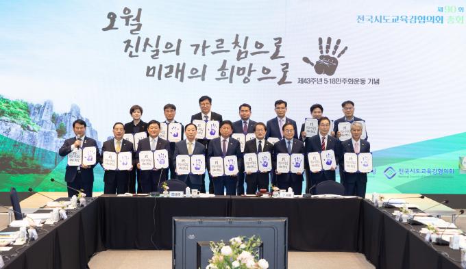 시·도교육감들은 총회에 앞서 5·18민주화운동 정신을 다짐하고 계승하기 위한 5·18 손도장 퍼포먼스를 진행했다. 이어 이정선 광주교육감의 제의로 '오월 진실의 가르침으로, 진실의 희망으로'라는 구호를 제창하며 5·18 정신의 전국화와 세계화에 힘쓸 것을 다짐했다.