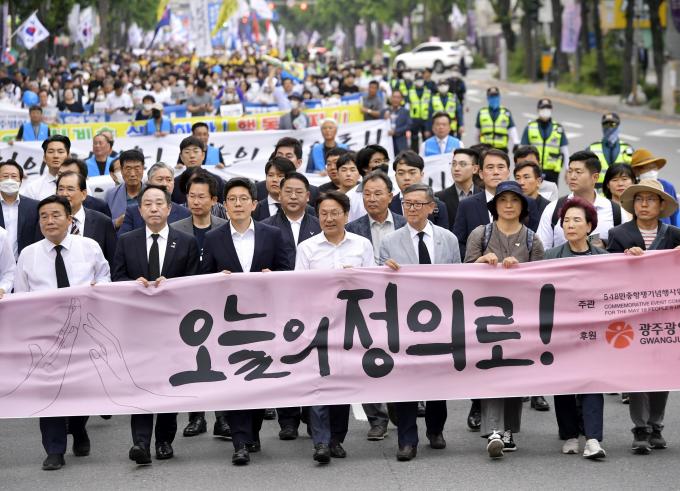 이어 "5·18민주화운동진상규명위원회의 활동이 올해 종료되고 내년은 국가보고서가 나오는 해임에도 5·18의 폄훼와 왜곡은 멈추지 않고 있다며"며 "이런 불행한 일의 반복을 종식시키기 위해 내년 총선과 함께 원포인트 개헌을 다시 한번 제안드린다"고 강조했다.