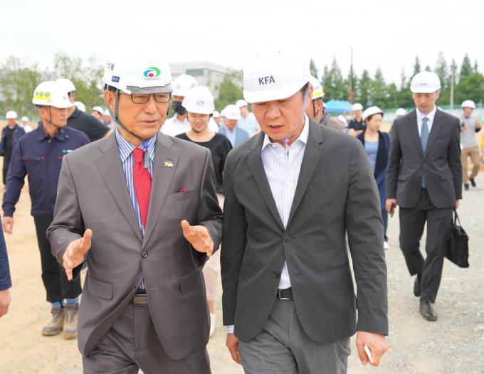 박상돈 시장은 대한축구협회 임직원들과 40여 분간 도보로 현장을 이동하며 앞으로 건립될 축구종합센터 부지를 둘러보고, 생활체육시설, 실내체육관, 축구역사박물관 등 건립 현황에 대해 설명하고 협조를 구했다.