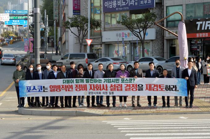 이어 "포스코 최정우 회장은 광양시민을 무시하고 협박한 것에 대해 즉시 사과하라"고 반발했다.