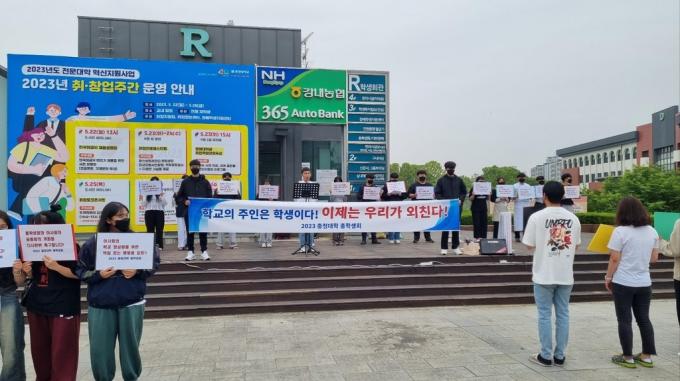 이어 "학내 갈등 해결을 위한 총학생회와 이사회의 공동회의 개최를 촉구한다"며 "이사회가 이런 요구를 무시하면 총학생회는 강경한 대처에 나설 것"이라고 강조했다.