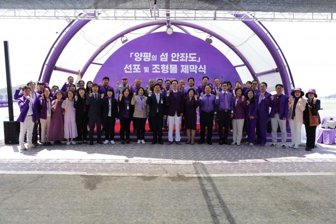 전진선 양평군수 "자매도시 간 유대감 강화와 상호 우호 증진 기대" 전남 신안군과 경기도 양평군이 23일 신안군 안좌도에서 '양평의 섬 안좌도' 선포식과 상징조형물 제막식을 진행했다.