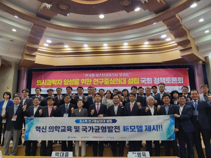 경북도는 24일 국회의원회관 제1소회의실에서 박대출 국민의힘 정책위의장, 김정재·김병욱 국회의원, 포항시, 포스텍, 포항시의원, 포스텍 연구중심 의대 설립 추진위원 등 200여 명과 함께 '의사과학자 양성을 위한 연구중심의대 설립 국회 토론회'를 열었다.