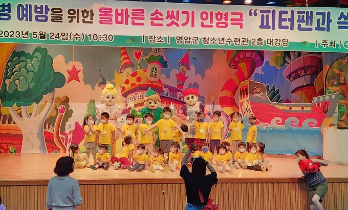 인형극은 유치원과 어린이집 32개소 어린이 621명이 친숙한 캐릭터인 피터팬과 후크선장의 이야기에 감염병 예방 손 씻기를 녹여낸 작품을 참관했다.