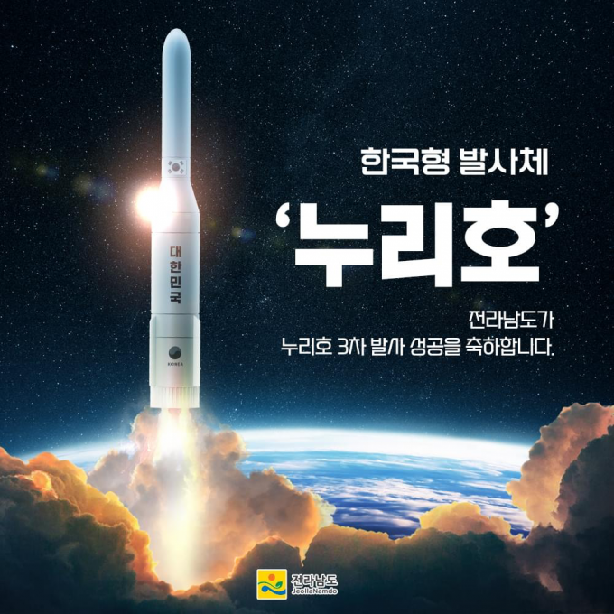 김 지사는 이날 축하글을 통해 "이번 3차 발사는 민간 기업이 처음 참여해 실용위성을 탑재한 첫 실전 발사라는 점에서 의미가 크다"며 "한국판 스페이스X 탄생의 초석을 다지고, 대한민국이 명실상부 우주 강국으로 나아갈 새 이정표를 세웠다"고 평가했다.