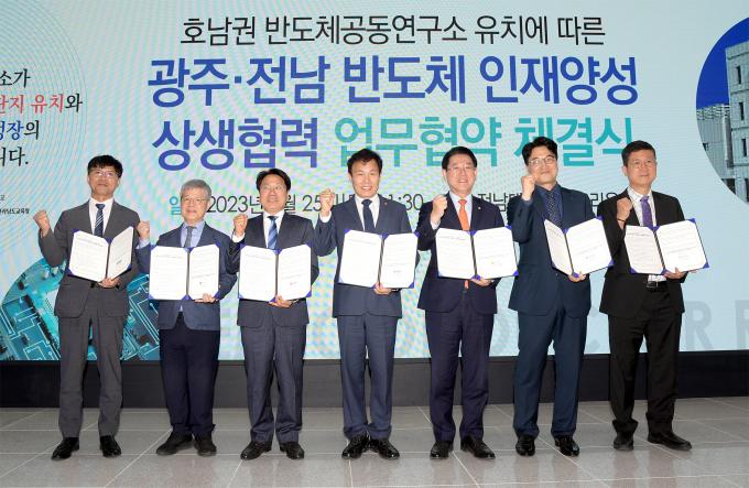 전남대학교와 광주광역시, 전라남도는 25일 전남대학교 스토리움에서 '광주·전남 반도체 인재양성 상생협력 업무협약'을 체결했다.