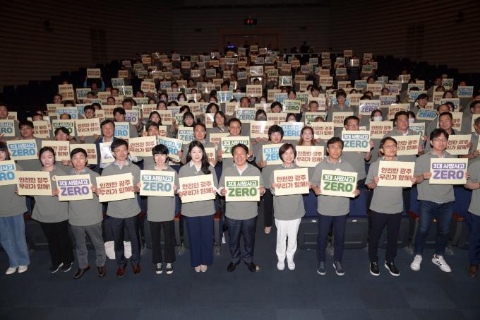▲강기정 광주광역시장이 30일 오후 시청 대회의실에서 열린 '3대 사망사고 줄이기 운동본부 발대식'에 참석해 기념촬영을 하고 있다. [광주광역시 제공]