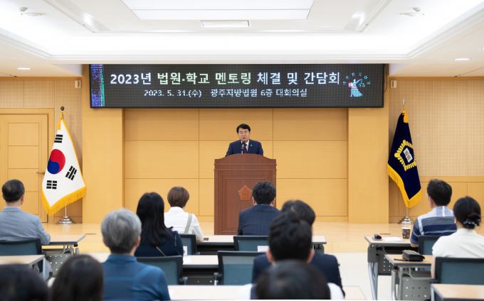 이날 멘토링 체결식에는 이정선 교육감, 광주지방법원 박병태 법원장과 멘토 법관이 참석했으며 소통프로그램 소개, 멘토링 우수사례 공유, 멘토 법관과 멘티학교 담당 교사 간 간담회 시간으로 진행됐다.