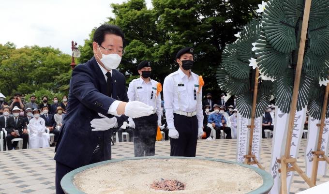 6일 울리는 묵념사이렌은 조국을 위해 헌신하고 희생한 순국선열과 호국영령의 명복을 기원하는 추념 행사에 맞춰 도내에 설치된 124개 민방위 경보 단말기를 활용한다.