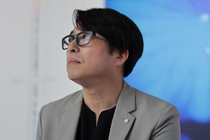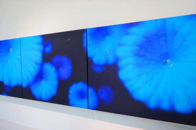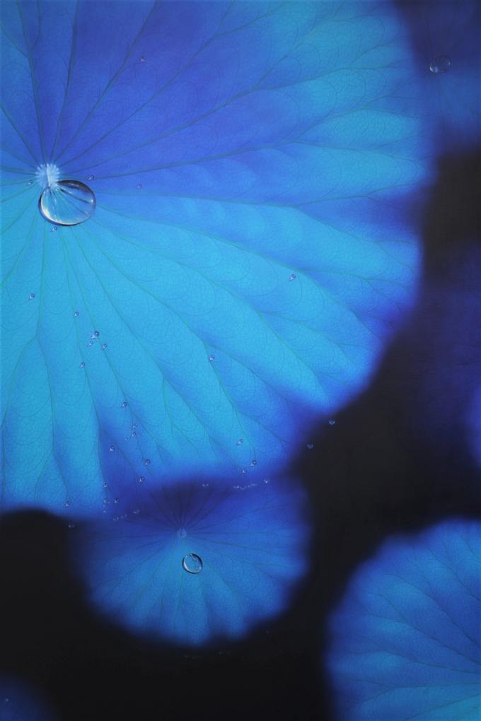 "연잎을 모습 그대로 보지 않길 바라죠. 잎은 심연 나비일 수도 있고 아닐 수도 있죠. 수십 가지 블루도 많은 것을 의미합니다. 젊음을 상징하는 청바지이든, 푸른 하늘이나 바다든, 또 그림에 등장하는 모든 오브제도 결국 해석은 관객의 몫입니다. 다만 나는 가상과 현실이 맞물려 뒤엉킨 이 시대의 자화상을 나만의 방식대로 그리고 싶었습니다."
