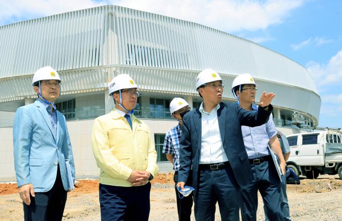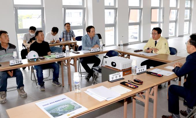 ▲문금주 전라남도 행정부지사가 22일 오후 9월 개청을 앞두고 있는 전라남도 동부지역본부 건설 현장을 방문, 현황을 청취하고 관계자들을 격려하고 있다. [전남도 제공]