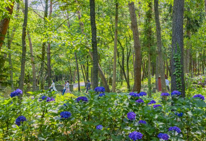▲23일 전남 구례군 수목원에 탐스럽게 피어난 수국이 만개해 절정을 이루고 있다. [구례군 제공]