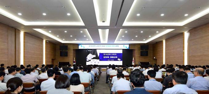 이날 교육에는 사장 직무대행과 상임감사위원을 포함한 경영진과 본사 중간관리자 이상은 대면으로, 사업소 처장급들은 실시간 화상교육으로 참여했다.