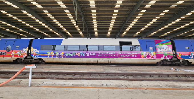 지난 14일부터 100년 역사 전국체전 최초로, KTX 산천(1편 10칸) 열차 측면에 선수의 뜨거운 열정과 역동적 경기를 상징하는 홍보디자인을 입힌 '전국체전 홍보열차'도 운행하고 있다.
