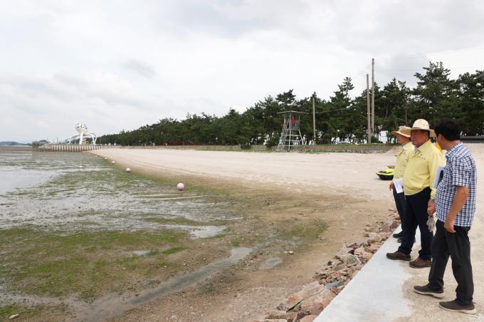 29일 무안군에 따르면 김산 군수는 낙지공원 해수욕장의 화장실, 샤워장 등 편의시설을 손수 점검하고, 백사장에 떨어진 쓰레기 등을 정리하며 해안가 청결상태 유지와 관광객 맞이를 당부했다.