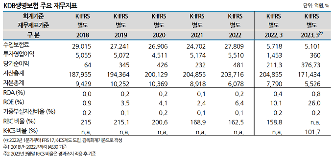 KDB생명의 1분기 지급여력비율(K-ICS비율·킥스)은 101.7%에 불과하다. 금융당국이 권고한 킥스 비율인 150%에 비해 현저히 낮다. 금융당국 허가로 KDB생명은 킥스 적용을 유예받기로 했지만, 향후 새 주인은 인수 직후 신주를 발행하는 등 자본력 확충부터 나서야 한다.