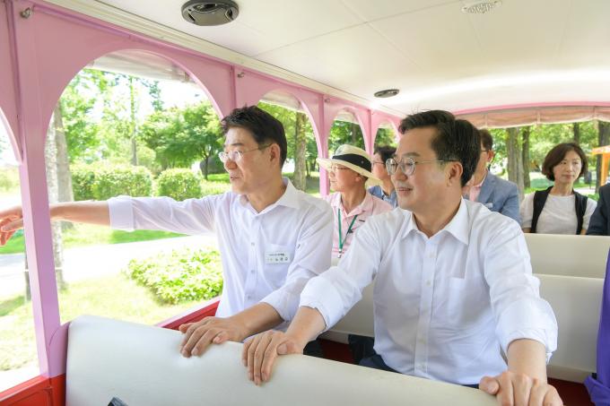 오후에 정원박람회장을 찾은 김동연 경기지사는 노 시장과 함께 국가정원 동문 일대를 돌아본 뒤 "경기도가 정원이나 신재생에너지 분야 등 기후위기 대응에 적극적으로 나서고 있는데 이와 관련해 순천에서 배워갈 점들이 많다고 생각한다"고 말했다. 또 "경기도가 추진 중인 4대(기업, 산단, 공공, 도민) RE100 분야 중 공공, 도민 분야에서 순천을 많이 벤치마킹하겠다"고 전했다.