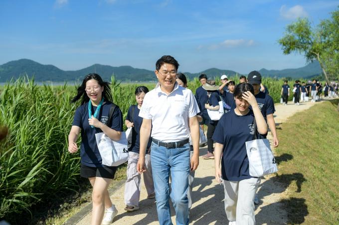 1일 순천시에 따르면 노 시장과 학생들은 장산소공원에서 시작해 대대포구에 이르는 갈대길을 걸으며, 직접 생태를 관찰하고 환경을 정비하는 프레셔스깅 프로그램을 가졌다.