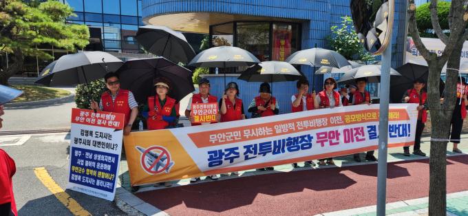 광주 전투비행장 무안 이전 반대 범군민대책위원회가 7일 광주 군 공항의 무안 이전을 반대하는 대규모 집회를 벌였다.