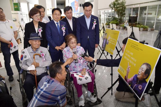 강 시장은 경축식이 끝나고 주요 참석자들과 함께 1층 시민홀에서 진행 중인 일제강제동원 피해자 사진전을 관람하고 피해자 이야기를 직접 듣는 시간을 보냈다.
