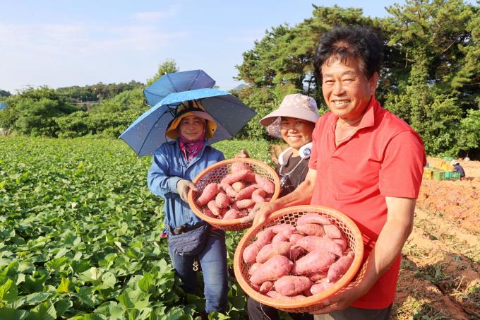 올해는 긴 장마로 수확이 다소 늦어진 편으로, 8월 초부터 밤고구마인 진율미 품종이 주로 출하되고 있다.