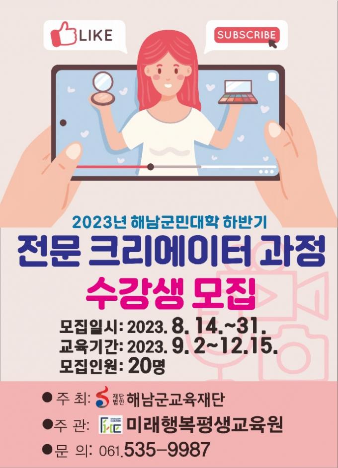 자세한 내용은 해남군청 누리집의 군정알림을 통해 확인할 수 있으며, 문의 사항은 미래행복평생교육원로 문의하면 된다.