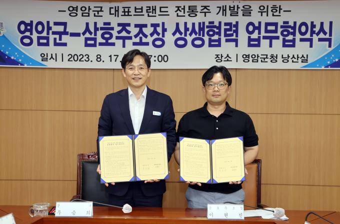 영암군은 지난 17일 삼호주조장과 '지역 대표 전통주 브랜드 개발 업무협약'을 체결한 뒤 전통주·수제 맥주 시음회를 가졌다고 20일 밝혔다.