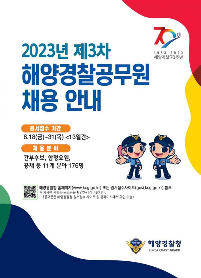 응시원서는 오는 31일까지 해양경찰 채용 누리집에서 접수 가능하며, 오는 10월21일 필기시험을 시작으로 12월5일~8일 면접시험을 거친 뒤 12월20일 최종 합격자가 발표될 예정이다.