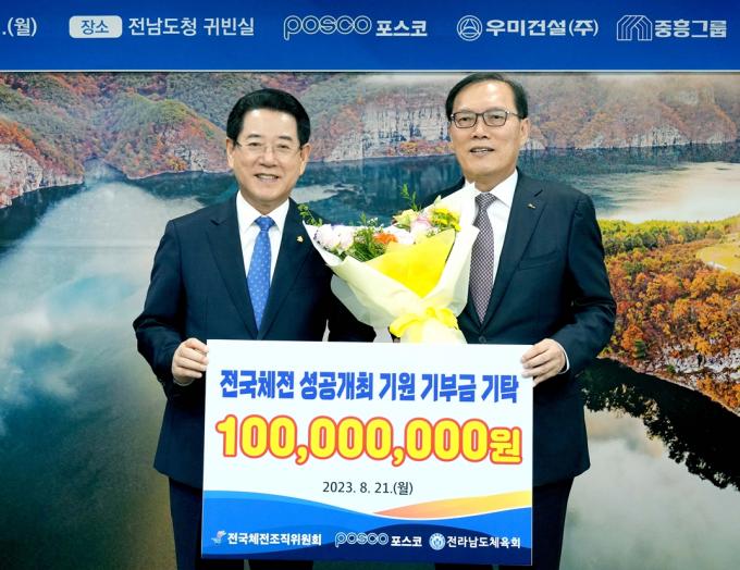 김영록 전남도지사는 "어려운 지역경제 여건에서도 기부금 기탁을 결정해주어 진심으로 감사드린다"며 "전국체전 성공 개최를 열망하는 뜨거운 관심과 지원에 힘입어 50여 일 앞으로 다가온 대회 준비에 최선을 다하겠다"고 전했다.