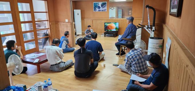 이날 교육은 서재만 한국 감 연구회장을 초빙해 감 유통 흐름·특성과 국내 육성 품종 재배 시 주의사항을 비롯해 8월 산란기에 들어가는 돌발해충(미국선녀벌레, 갈색날개매미충 등) 방제법 등으로 이뤄졌다.