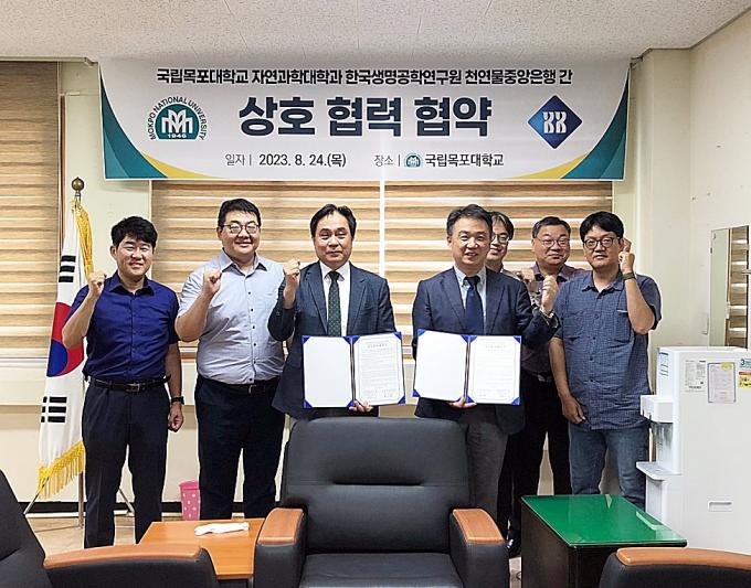 28일 목포대에 따르면 이번 협약식에는 목포대 자연과학대학 박시형 학장과 한국생명공학연구원 천연물중앙은행 오세량 은행장 등 관계자 6명이 참석했다.