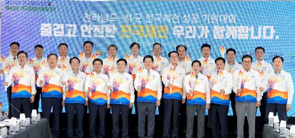 또 "그동안 전국단위 행사는 물론, 세계적 규모의 행사를 성공적으로 치러내면서 '하면 된다'는 희망과 자신감을 얻었고, 또한 해낼 수 있는 저력도 갖췄다"며 "이번 전국체전은 생명의 땅 전남에서 국민화합체전, 문화관광체전, 국민감동체전, 나아가 미래희망체전으로 다시 태어나도록 모두가 힘을 모으자"고 강조했다.