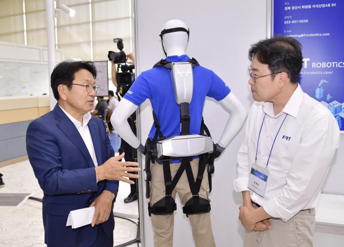 ▲강기정 광주광역시장이 29일 오후 시청 시민홀에서 열린 지역 창업기업의 혁신기술 실증을 위한 '창업제품 실증 경진대회'에 참석해 전시부스를 둘러보고 있다.[광주광역시 제공]