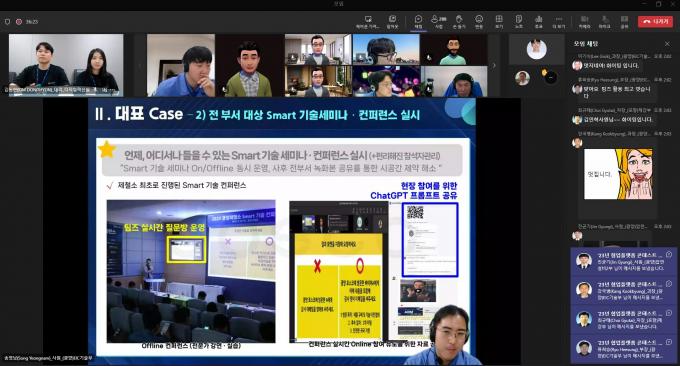 팀즈 상에서 진행된 이번 대회에서는 조업, 마케팅, 구매, 안전 등 각 부서가 서로의 부서 내, 부서 간 협업 사례를 선보이며 다양한 팀즈 활용 방법을 소개했다.