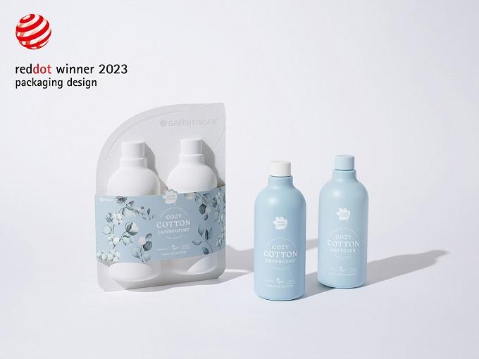 대상 제품은 비건 제품인 '그린핑거 포근한코튼 세탁세제 및 섬유유연제 세트'로 지속가능한 종이 패키지를 적용해 지구환경 보호에 기여하면서도 감각적이고 실용적인 디자인을 적용해 호평을 받았다.